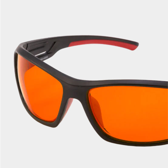 The exact frequencies of light in line with science are blocked with our amber/red lenses. We know that blue and green light found between 400nm-550nm disrupts melatonin production and damages your sleep. Our Blue Light Blocking Glasses block 100% of blue and green light that falls between 400nm and 550nm ensuring you have the most optimal blue blockers in the world.